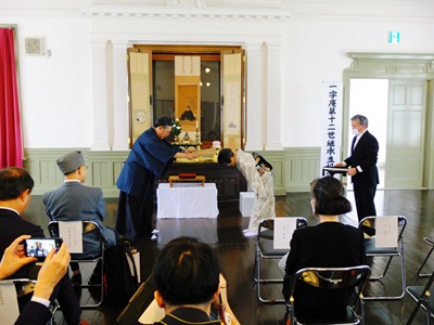 新たな一字庵十二世の立机式と、二百回忌を記念し「太翔館」に建立する句碑の除幕式が行われました。